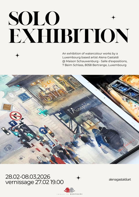 A solo exhibition of watercolour works created both in plein air and in the studio, Luxembourg